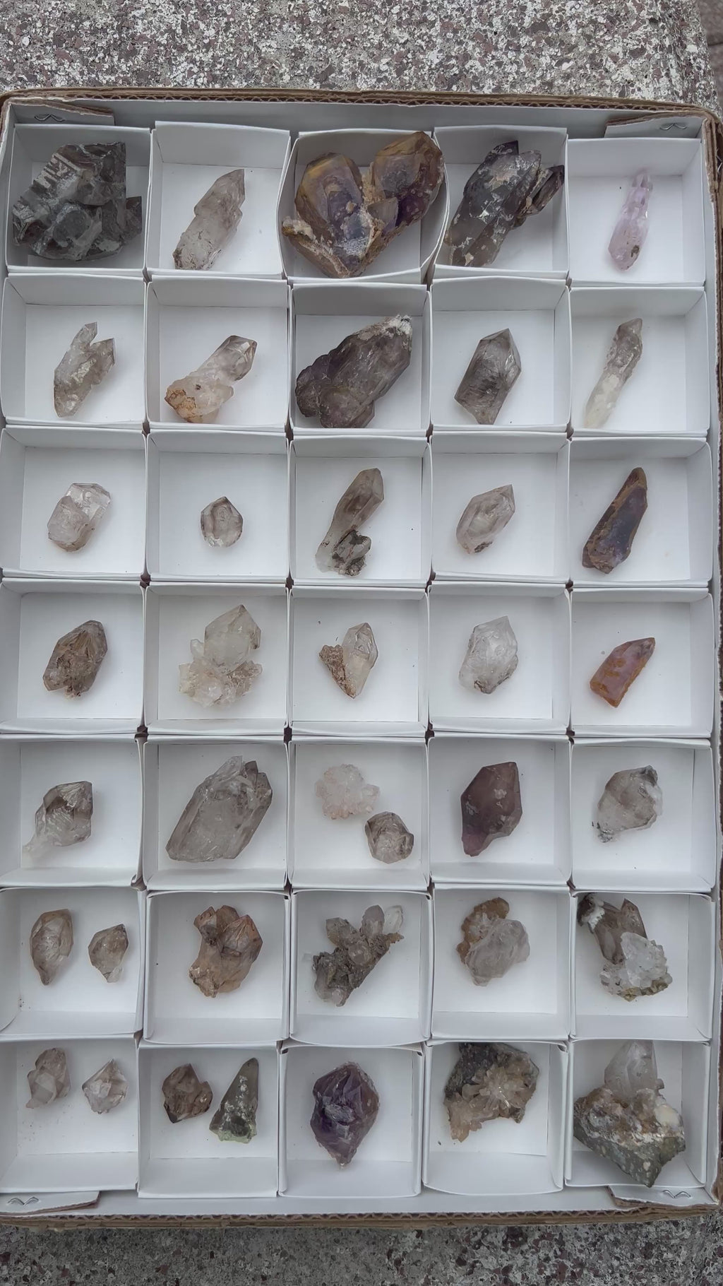 This wholesale flat features a stunning selection of Brandberg Quartz crystals, sourced directly from the Brandberg Diatrict in Namibia, showcases exceptional clarity, making them highly desirable for collectors and resale. Some of the pieces are clusters.