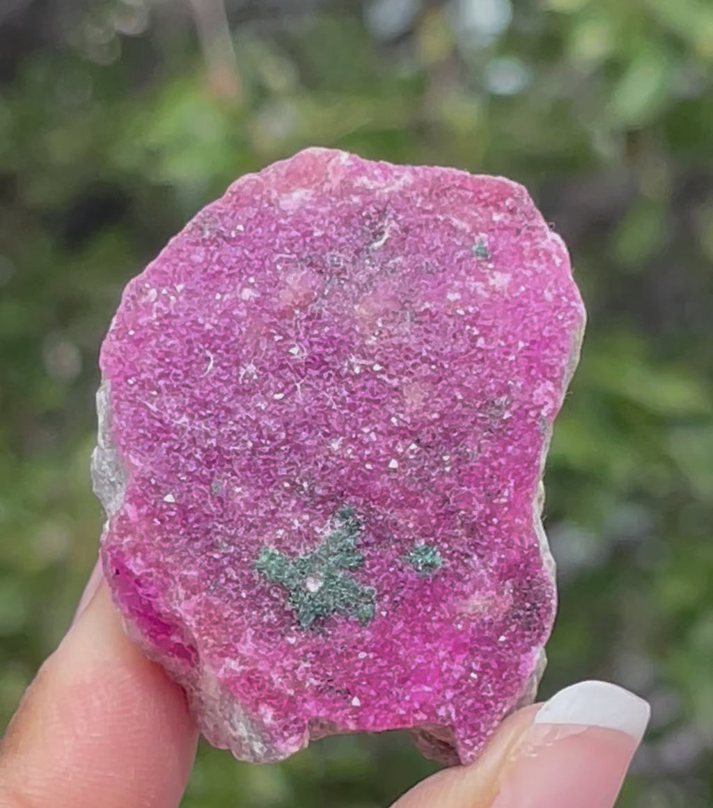 The Cobalt-bearing Calcite pieces are exactly as shown in the photos and videos, showcasing their sparkling purple color.